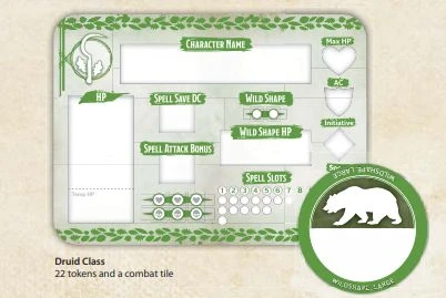 Each token set includes a combat tile and 20 regular tokens with 1 large inspired token. Some classes have additional tokens dedicated for that class which is shown above.